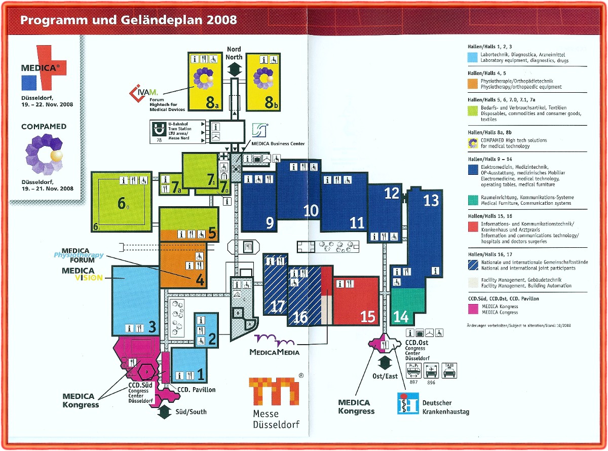 Dusseldorf (Germania) – MEDICA 2008, Fiera Internazionale della Medicina e della Tecnica Ospedaliera. Una cosa ENORME, circa 2400 espositori divisi in 17 padiglioni (hall), centinaia di migliaia di visitatori, migliaia di stand e aziende di tutto il mondo (soprattutto quello asiatico… la Cina ci invade!!). Molti parlavano di crisi economica, e di scarsa affluenza rispetto alle precedenti edizioni… ma per noi, abituati ai vari SIBIOC… è un paradiso di strumenti, reattivi, metodiche, esperienze di tutto il mondo! Il “piccolo” mercato italiano qui è una eccezione nota a tutti; le migliaia di piccoli laboratori privati sono esclusiva italiana, e più ancora del sud Italia. Ma le aziende mondiali, anche i cinesi, sembrano sempre ansiosi di avere un partner italiano, anche per il Sud Italia, sentendo i numeri dei nostri laboratori (circa 600 laboratori privati solo in Campania…!). Vedremo che ne verrà fuori. Certo l’offerta di strumenti e prodotti vari è enorme, i prezzi i più vari, e i cinesi non sono più i più economici, e oramai puntano mediamente alla qualità dei loro prodotti. Ora i prezzi più “aggressivi” senza troppo badare a qualità e design sono appannaggio di altri paesi orientali, non più i soliti Cina – Korea – Giappone & vari; girando per i vari stand troviamo romania, pakistan, bulgaria…